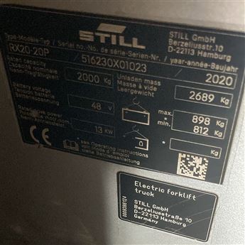 2020 MODEL STİLL MARKA RX20-20P SERİSİ 2 TON KAPASİTELİ 4 TEKER AKÜLÜ FORKLİFT